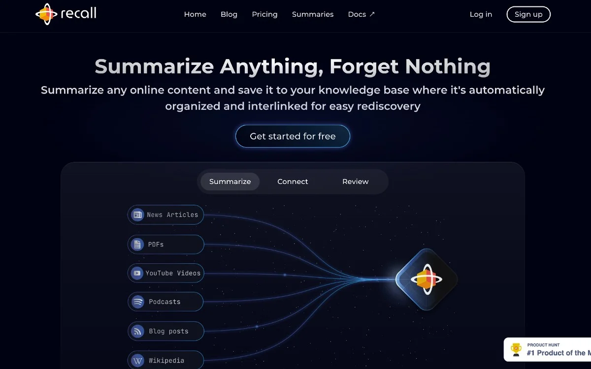 Recall verwandelt verstreute Inhalte — YouTube, PDFs, Webseiten — in eine persönliche Wissensdatenbank mit sofortigen Zusammenfassungen.