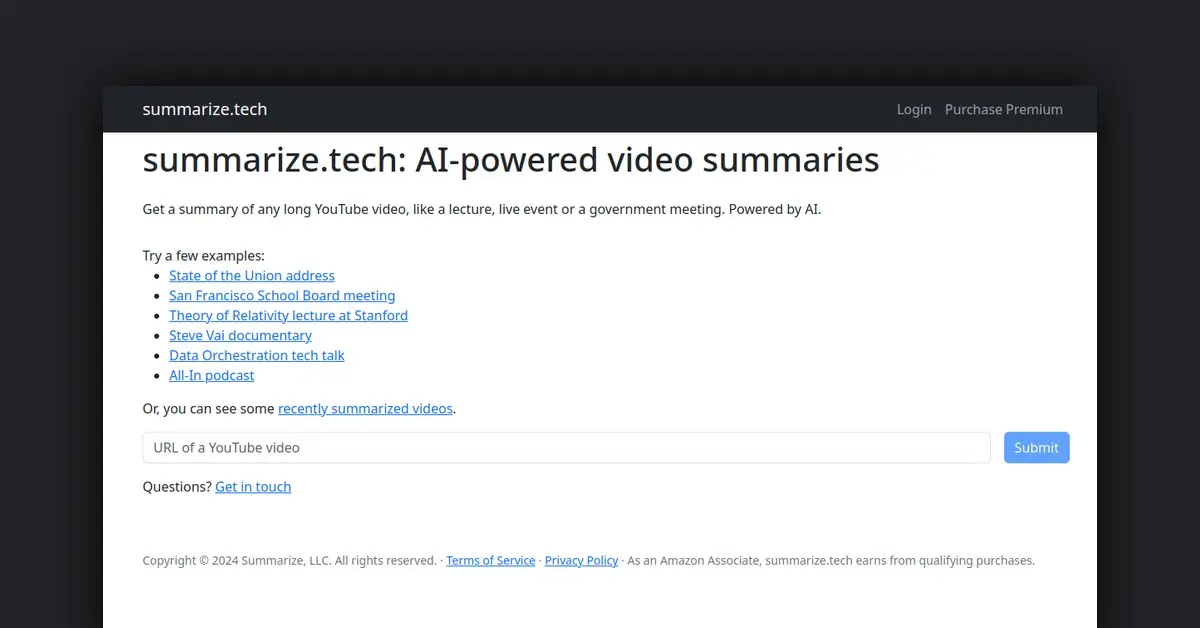 Sie verschwenden Zeit damit, lange Videos erneut anzusehen, um das Wesentliche festzuhalten. Summarize.tech fasst stundenlange YouTube-Inhalte mit einem Klick zu kurzen Zusammenfassungen zusammen.