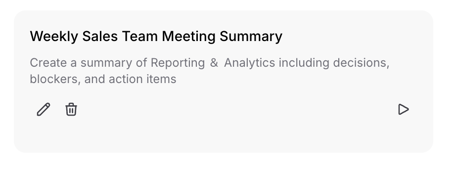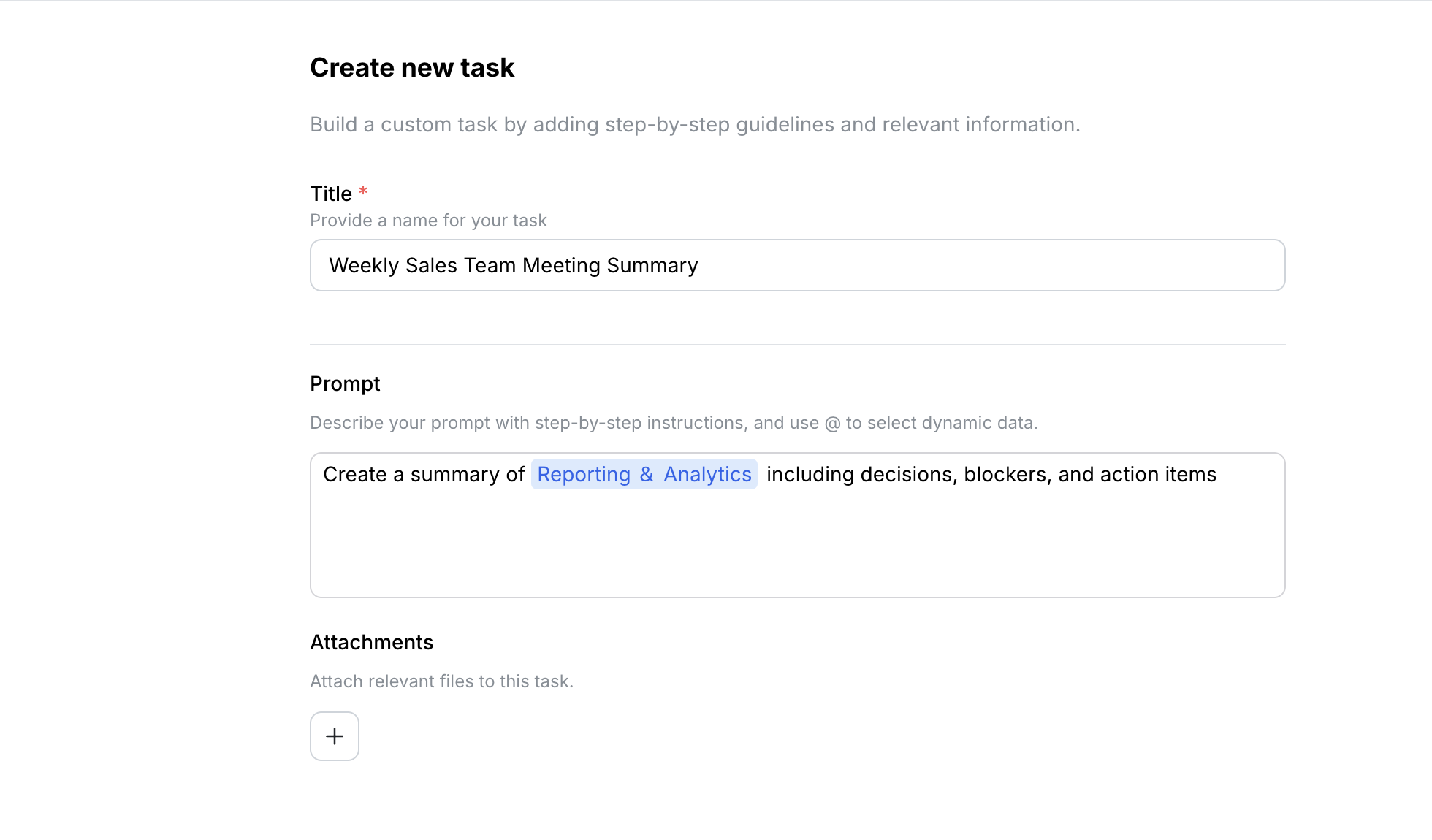 Example: “Weekly Sales Team Meeting Summary”Type your prompt