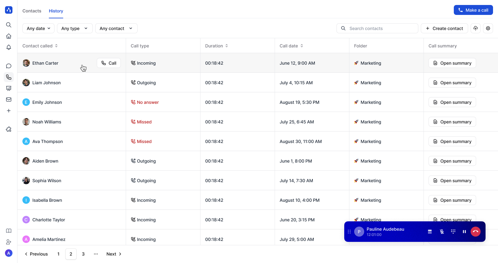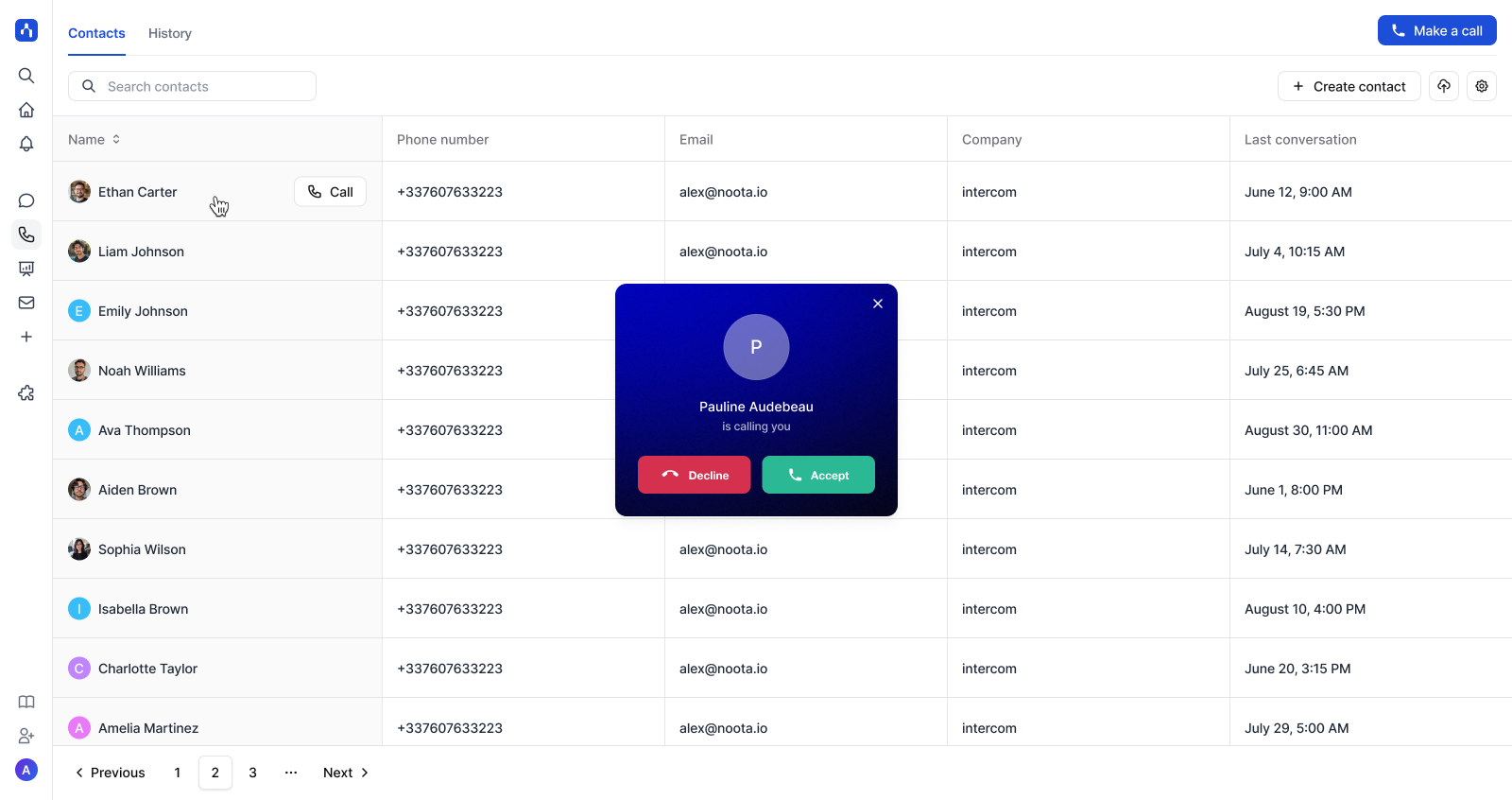 Call any contact directly from Noota