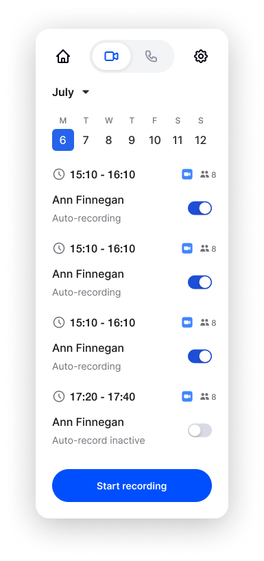 “Record” button per meeting