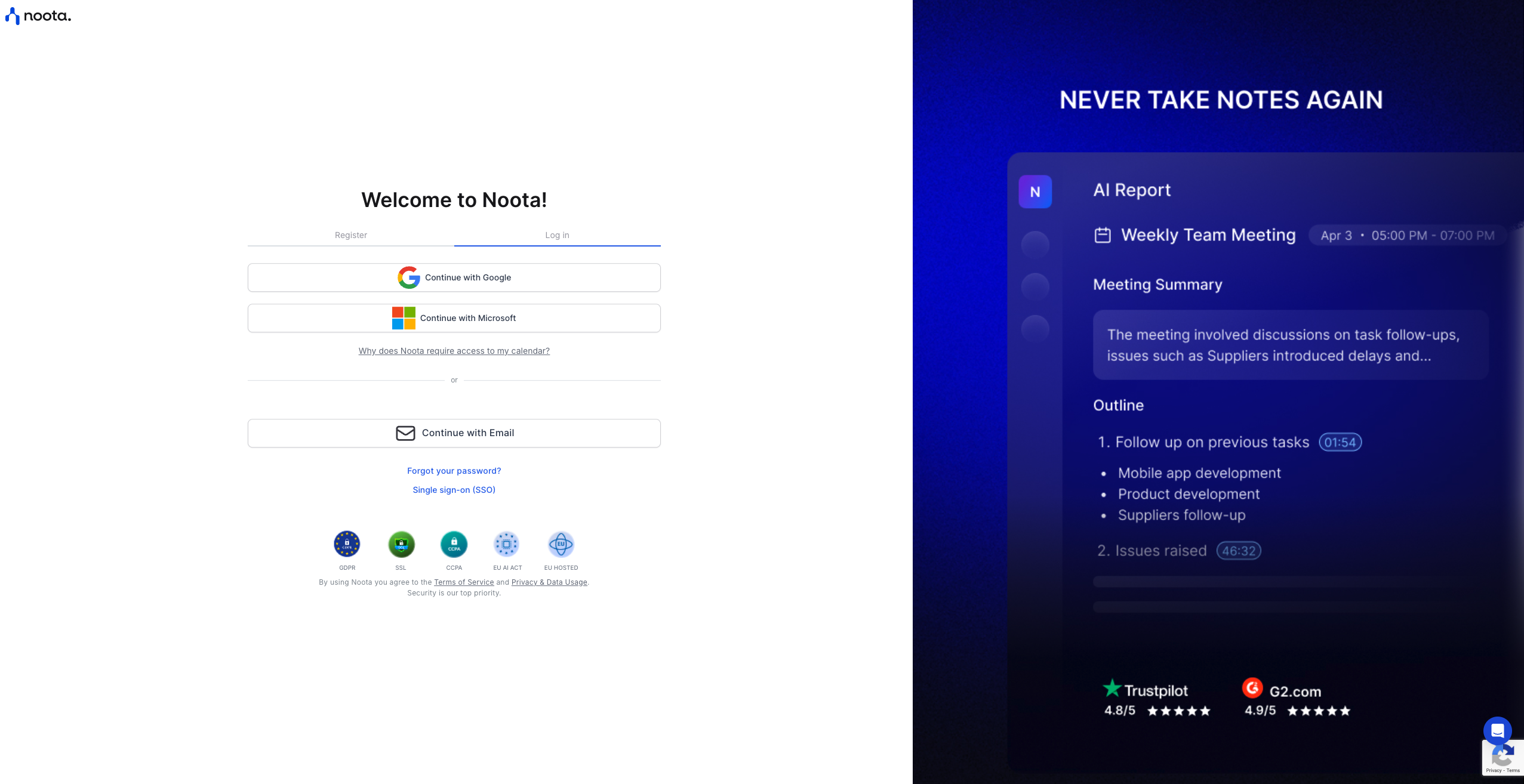 Noota offers flexible capture options depending on your privacy needs.
