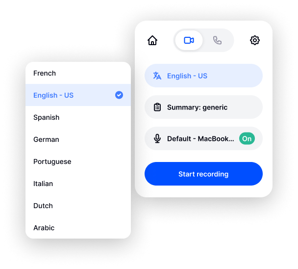 Record online meetings, make calls, and access Noota VoIP from your browser.