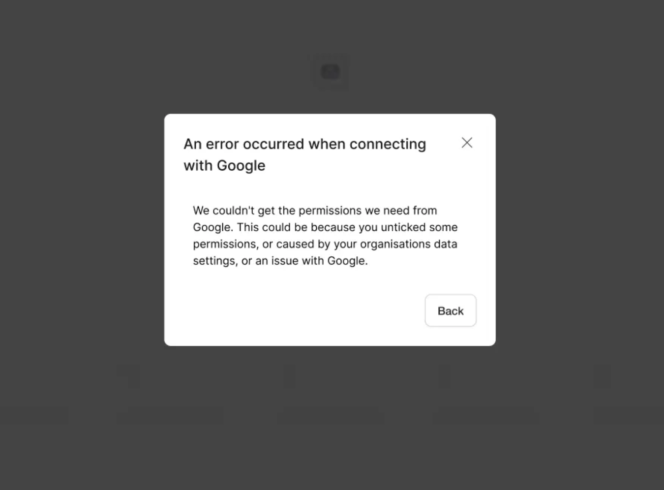 You’ll see an error screen with a brief explanation and a Back button to retry.