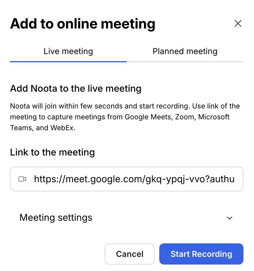 Copy/paste the Noota email address into your calendar event.
