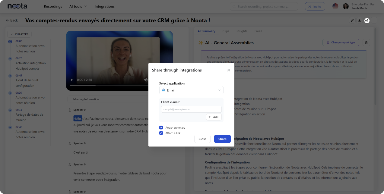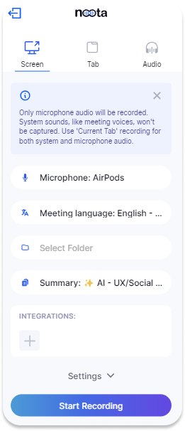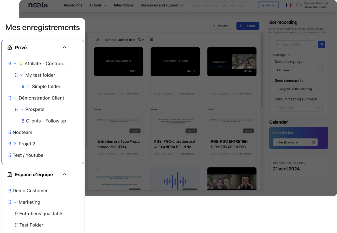 2. Pre-Meeting Configuration: Configure Noota before your meeting to automatically send files to the selected folder.