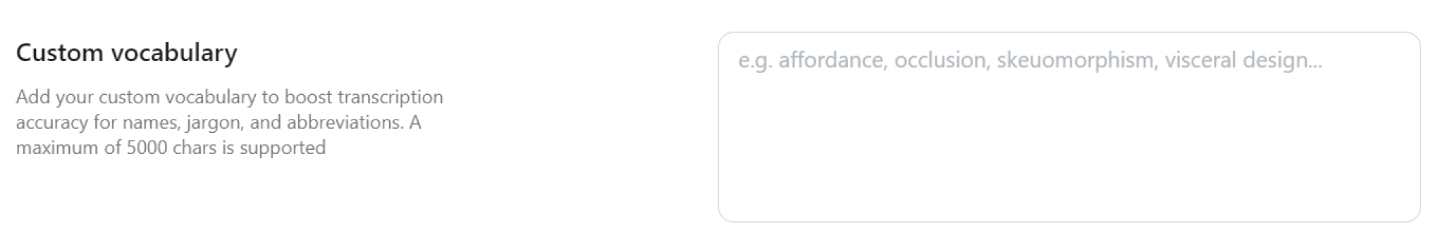 Add your custom vocabulary to boost transcription accuracy for names, jargon, and abbreviations.
