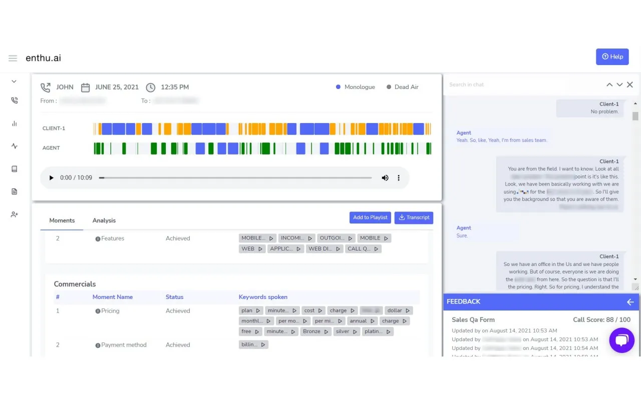 Beyond transcription, Enthu.AI analyzes your calls to provide actionable insights. It identifies key moments, tracks sentiment, and highlights areas for improvement. This helps teams refine their communication strategies and improve customer interactions.