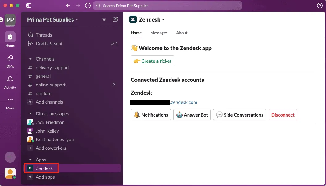 Create and update tickets from Slack and notify channels in real time using native Zendesk apps.