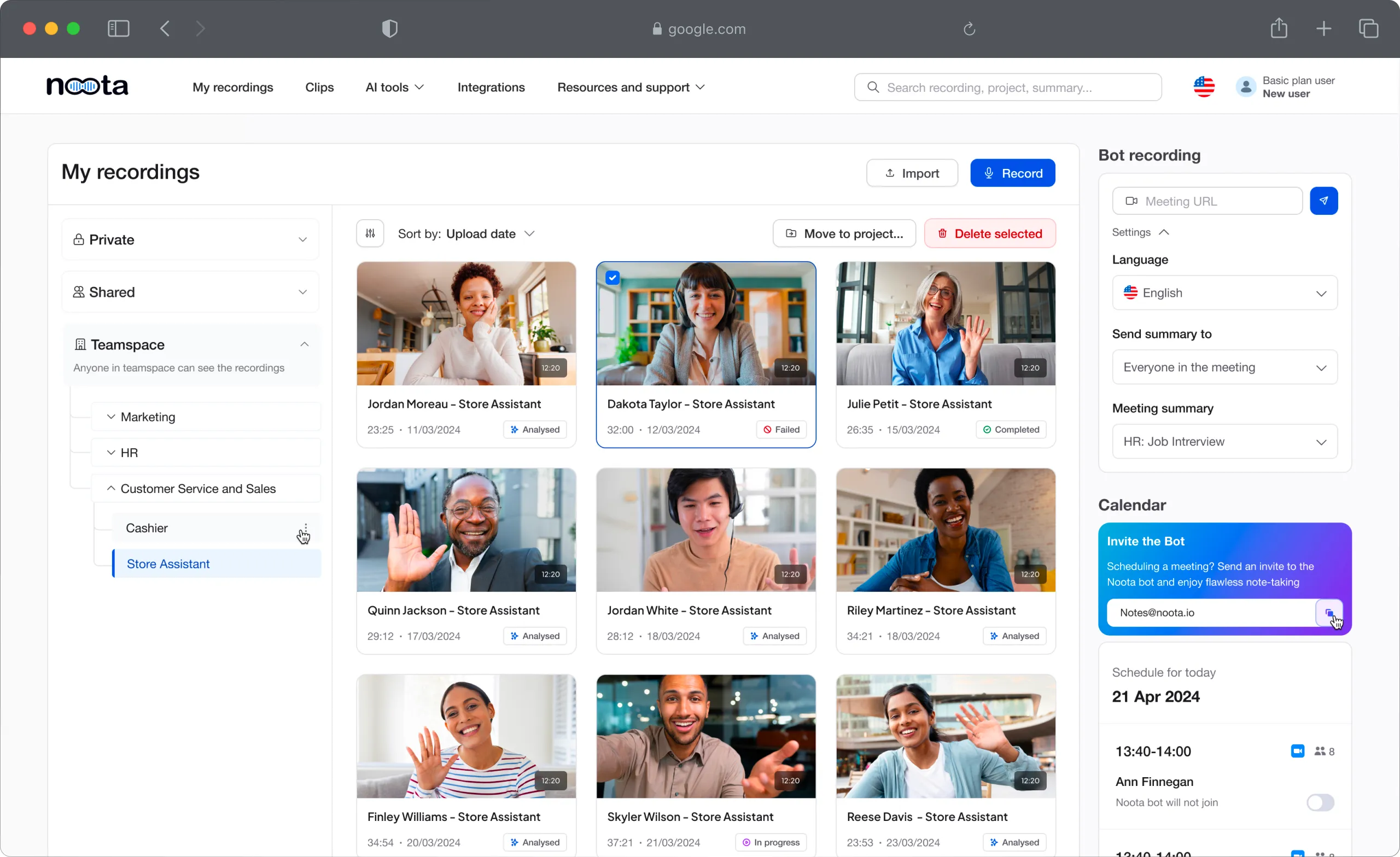 - Unlimited meetings. Use Noota across interviews, sales calls, or team check-ins without worrying about meeting count.