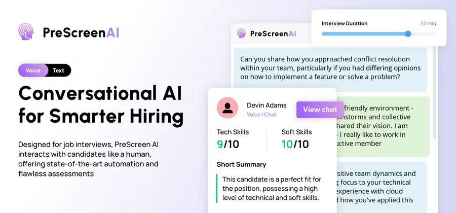 Prepantalla AI automatiza la selección de candidatos de gran volumen mediante la IA conversacional, lo que mejora la eficiencia de la contratación para los equipos empresariales.