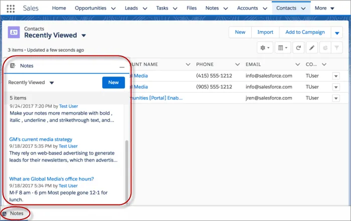 En la versión Lightning Experience, son «Notas mejoradas», lo que significa que obtiene formato (negrita, listas numeradas, imágenes) con el que puede relacionar una sola nota registros múltiples, y tiene el historial de versiones y la capacidad de compartir.