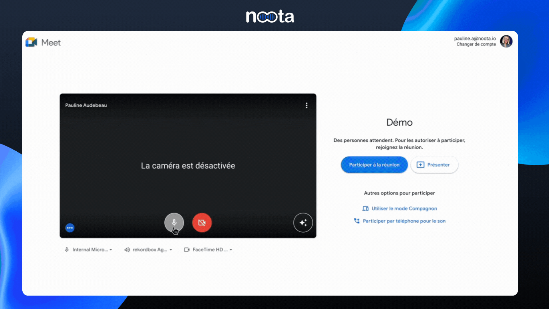 Lorsque vous utilisez NootEx, Noota n'alerte pas automatiquement les participants de la réunion de l'enregistrement. Cependant, il est considéré comme une bonne pratique de les en informer.