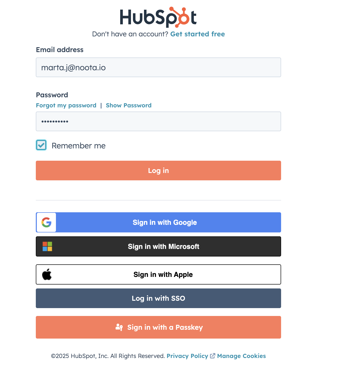 Ensuite, vous serez redirigé vers HubSpot pour vous connecter.