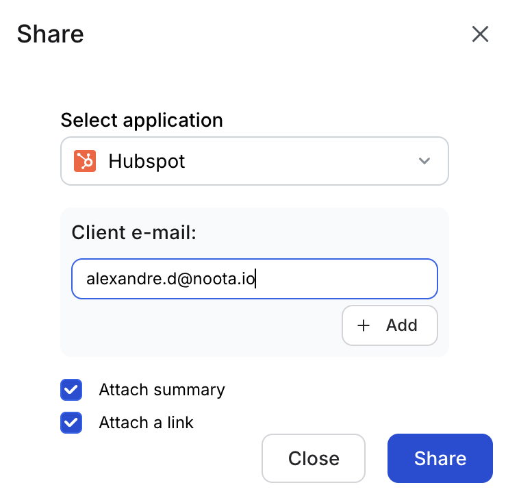 Maintenant que l'intégration est active, vous pouvez envoyer des résumés et des notes de réunion à HubSpot sans effort.