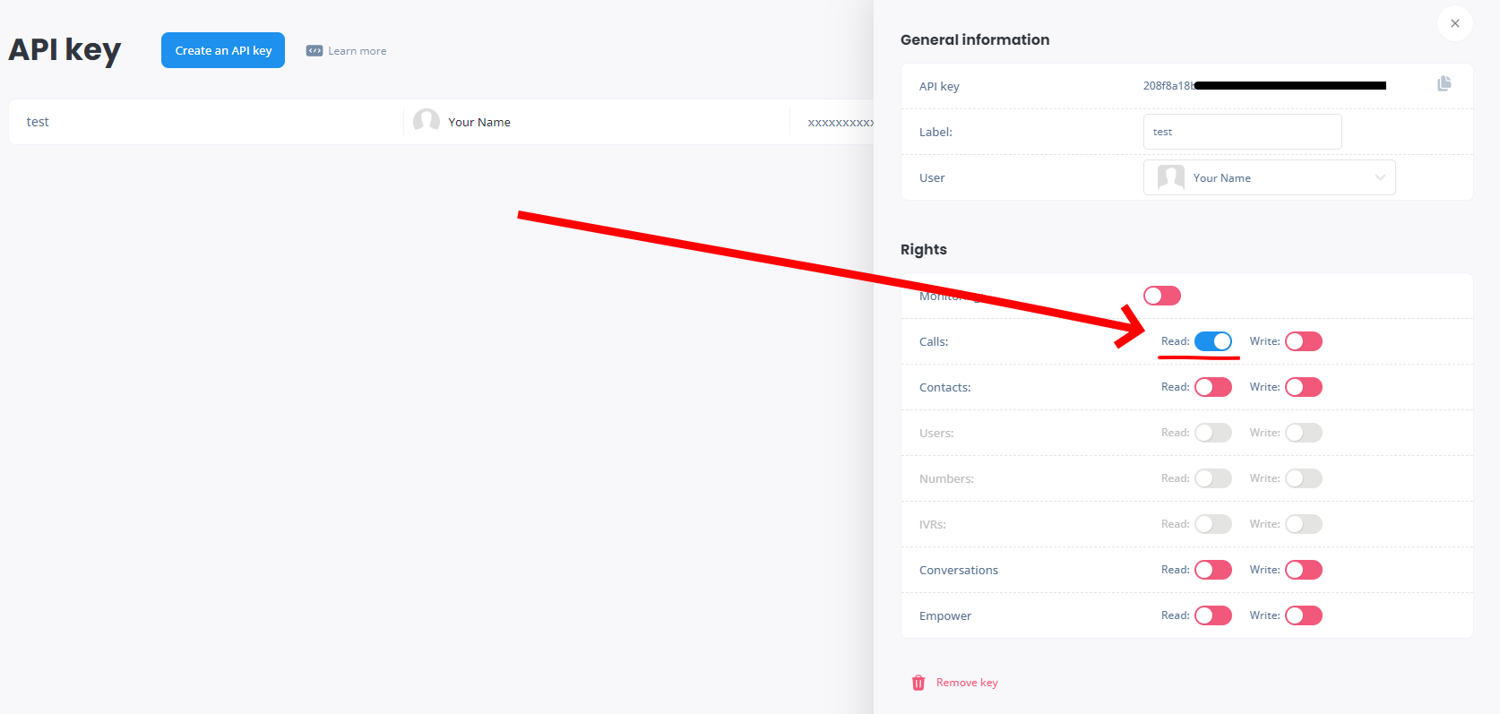 ⚠️ Assurez-vous d'autoriser l'accès en lecture des appels