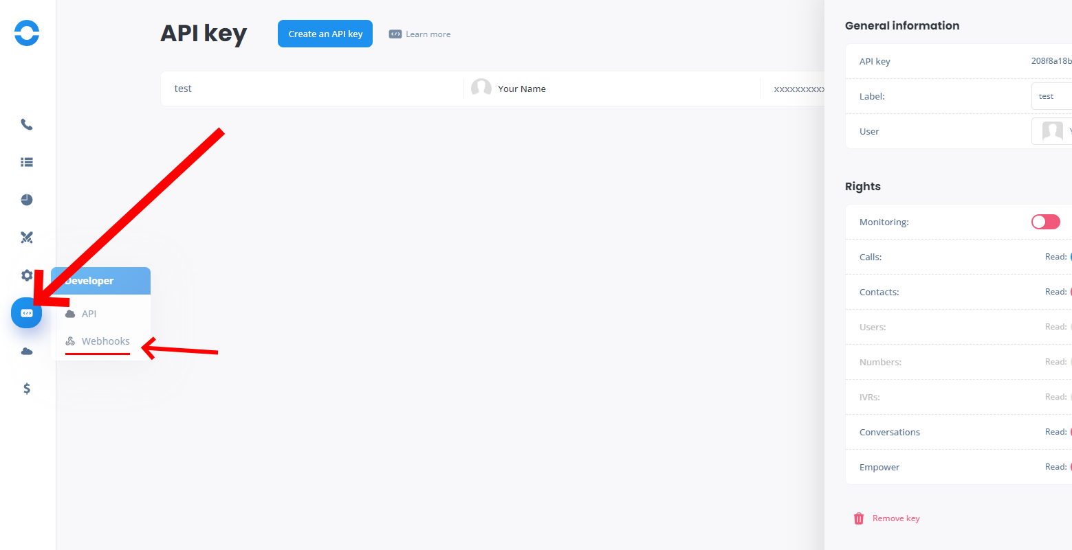 a. Dans le menu « Développeur », sélectionnez «Webhooks»: