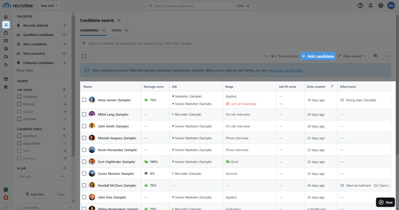 Pendant votre processus de recrutement, vous pouvez facilement ajouter des candidats à votre système.