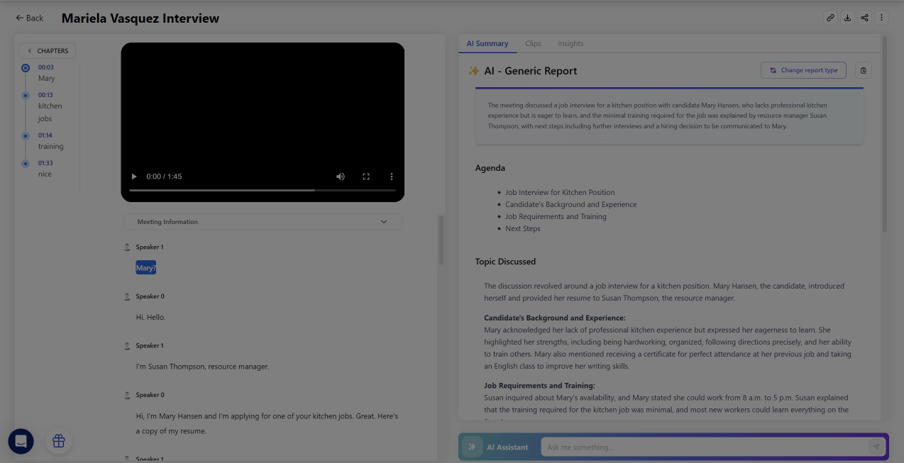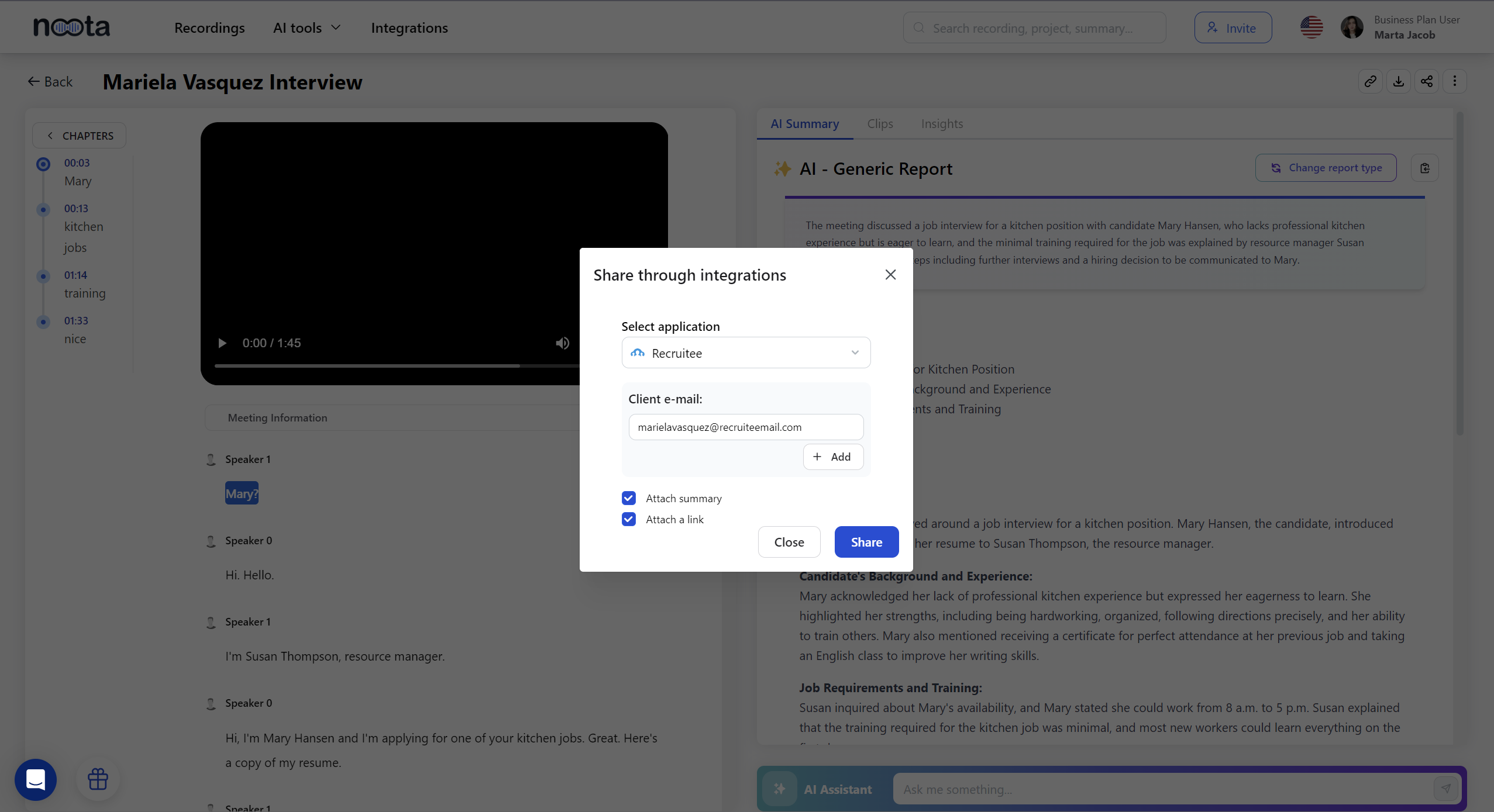 Après avoir terminé un entretien, suivez ces étapes pour partager le résumé via l'intégration Recruitee: