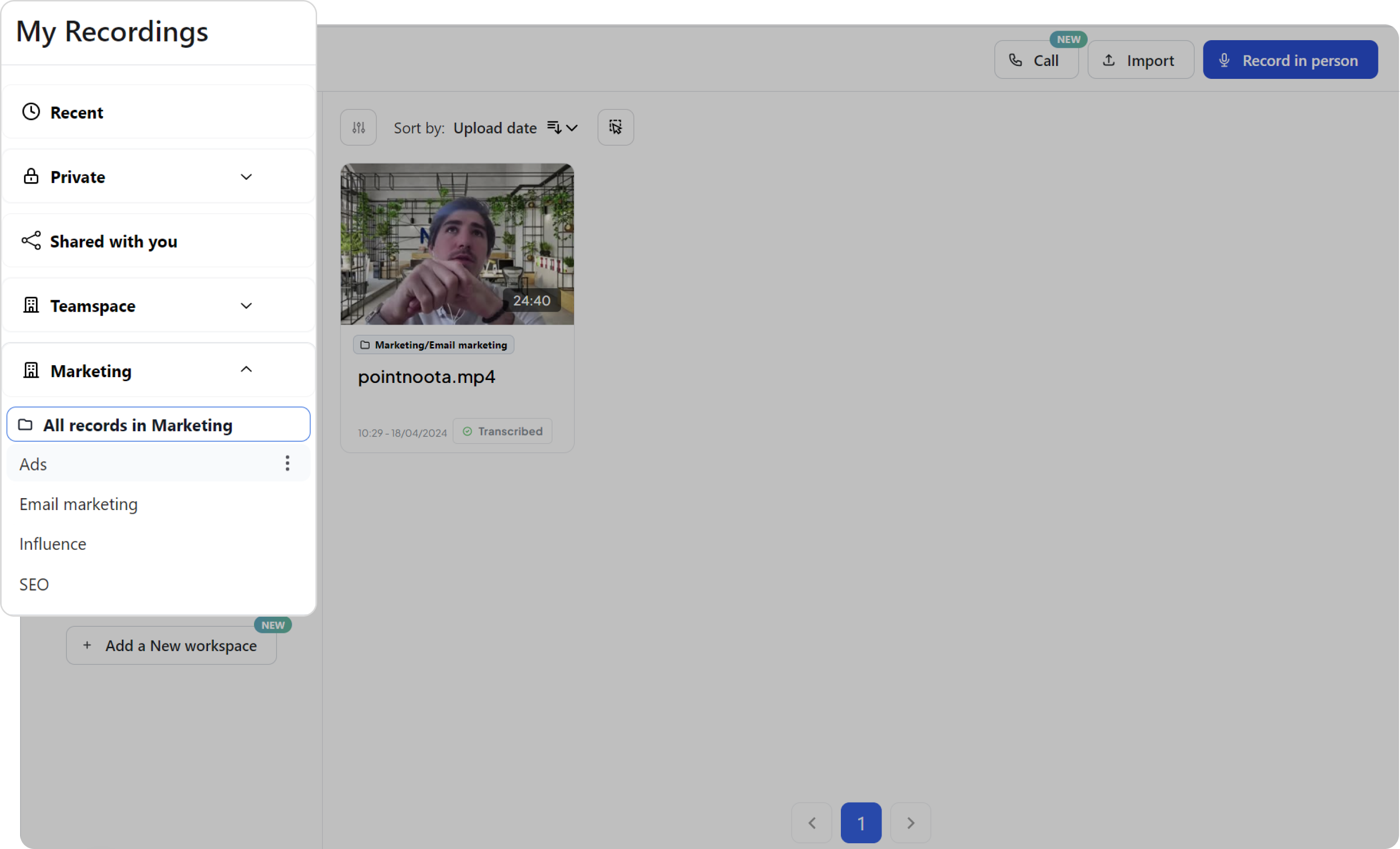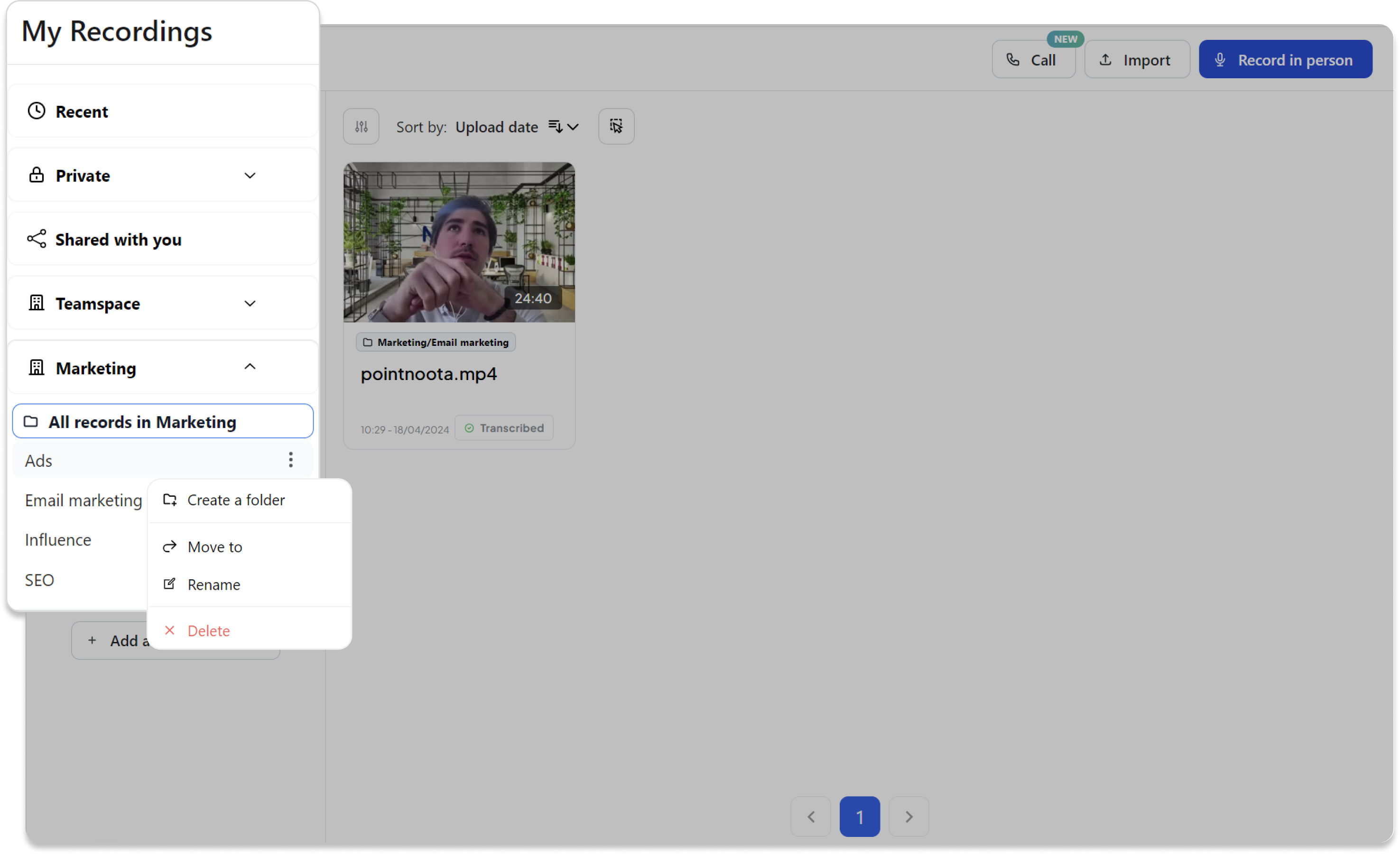 Par exemple, vous pouvez créer des dossiers tels que SEO , Influence ou Médias sociaux dans votre espace de travail Marketing.