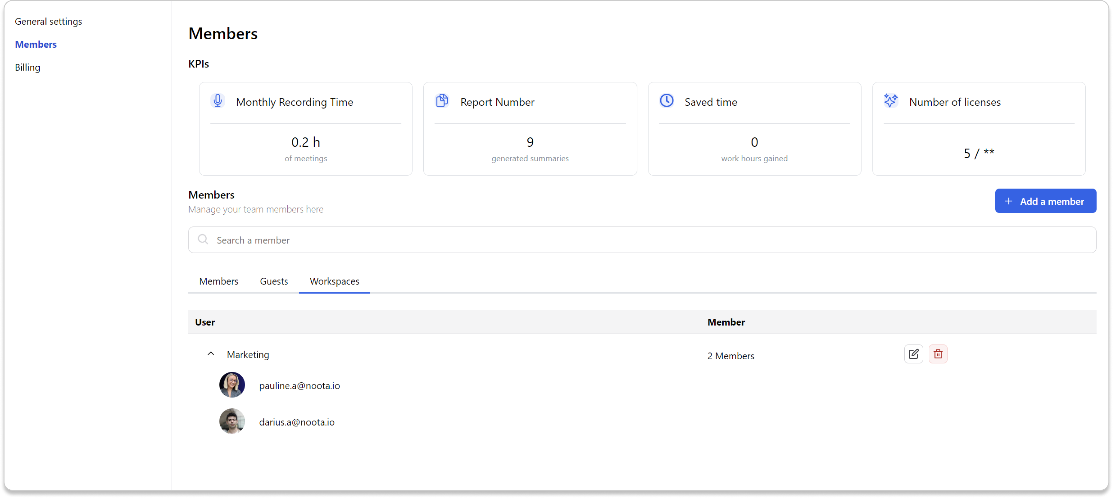 À partir de là, vous trouverez une liste complète des membres de votre équipe et des espaces de travail auxquels ils ont accès.