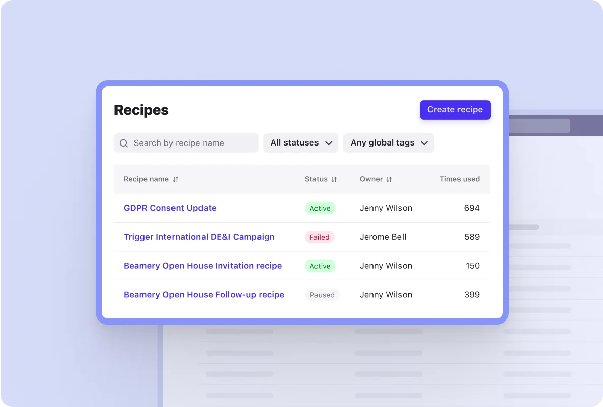 - Comme Beamery prend en charge l'API et les webhooks, vous pouvez associer des outils de réunion/notes externes au pipeline de profils des candidats et tout aligner.