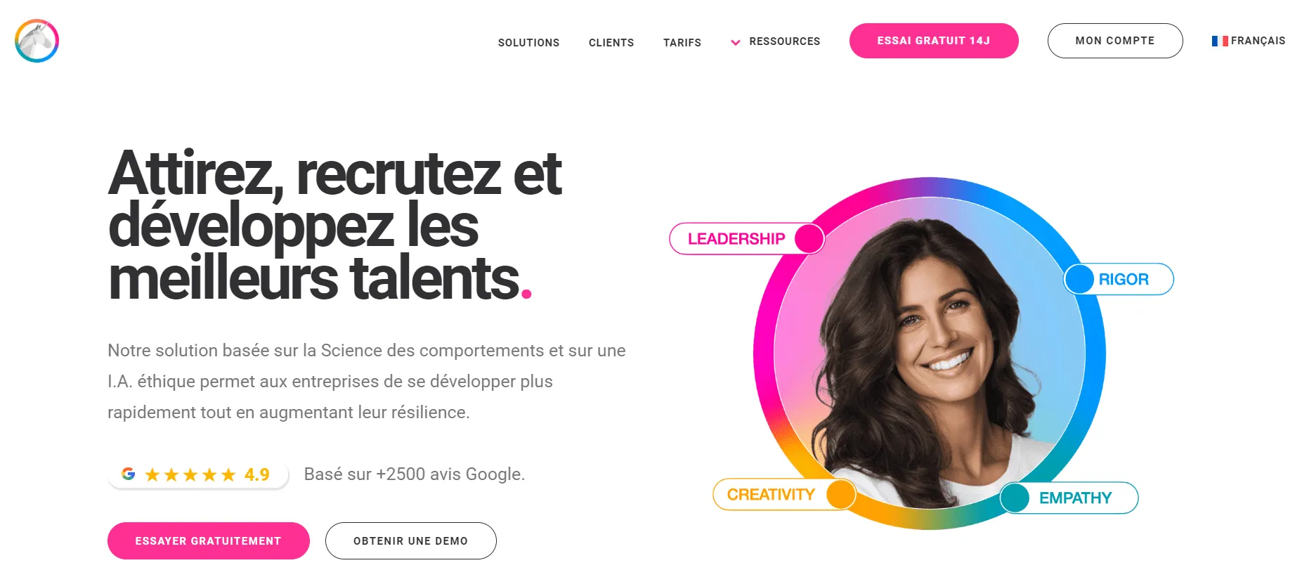 AssessFirst utilise l'analyse prédictive pour aider les recruteurs à comprendre le potentiel des candidats bien au-delà de leur CV. Cet outil se concentre sur trois dimensions principales : le cerveau, la personnalité et la motivation.