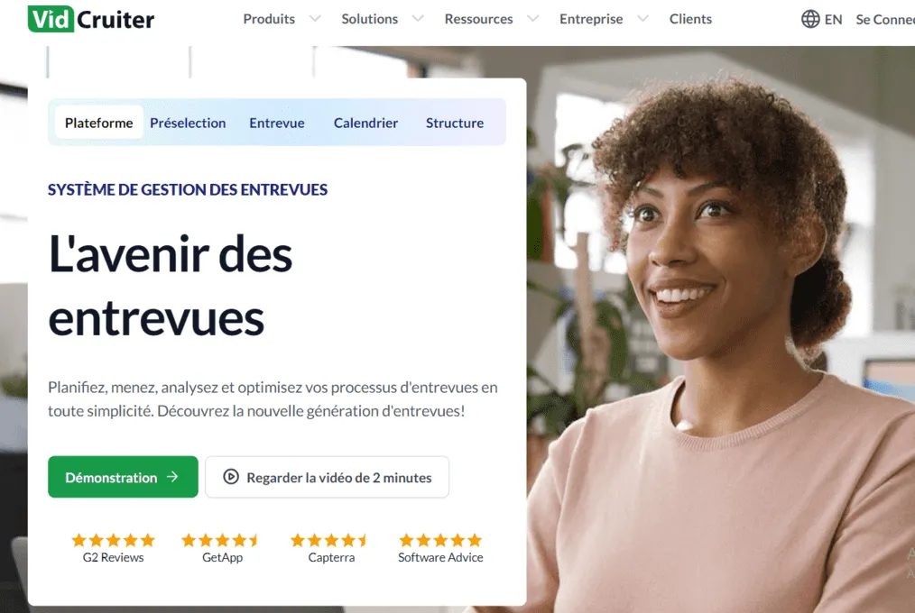 Voici cinq plateformes d'entretien vidéo qui se distinguent par leur facilité d'utilisation, leurs fonctionnalités innovantes et leur capacité à améliorer l'expérience d'entretien pour les recruteurs et les candidats :