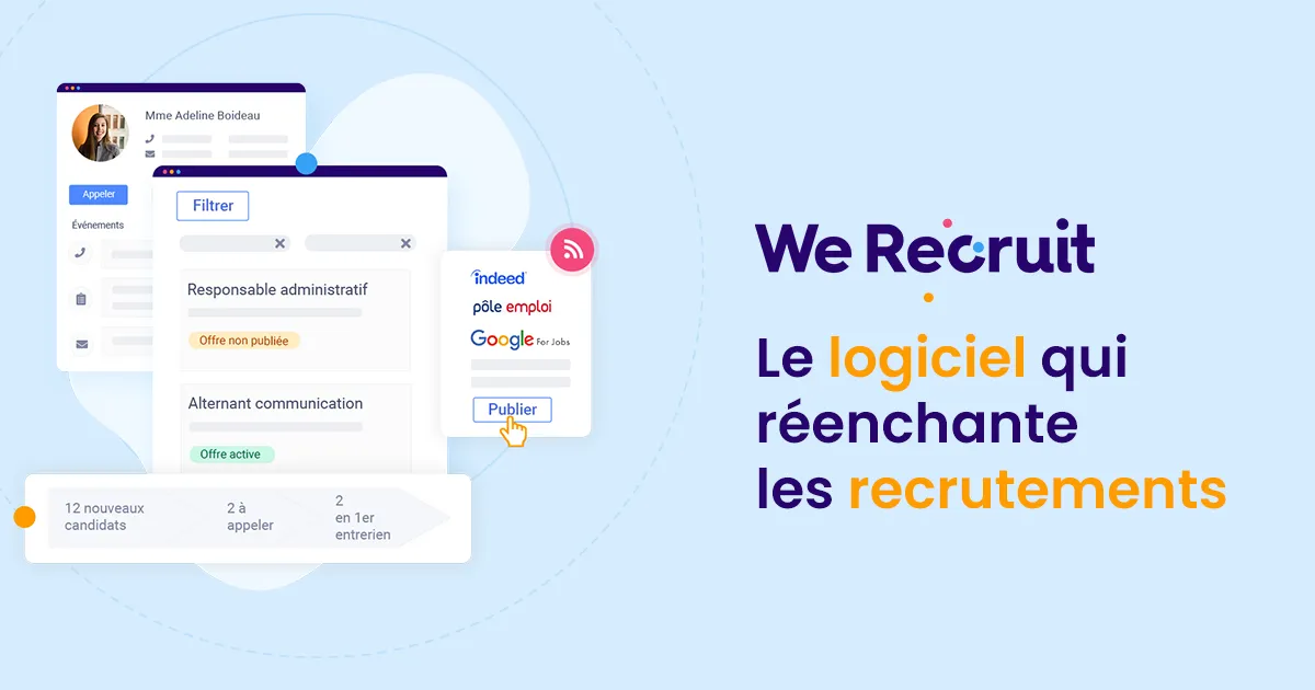 We Recruit est un logiciel SaaS personnalisable, ergonomique et intuitif dédié au recrutement. Il accompagne les recruteurs à chaque étape, de la mise en valeur de la marque employeur, à la gestion des candidatures et du sourcing, jusqu'à l'évaluation et l'améliorer le processus global de recrutement de l'entreprise.