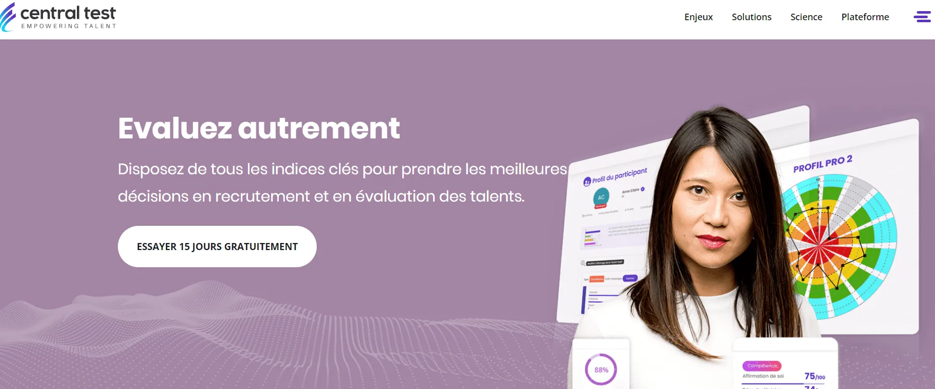 Central Test propose une large gamme d'outils psychométriques conçus pour évaluer les compétences professionnelles et les traits de personnalité des candidats. Il s'agit d'une solution complète pour les entreprises qui cherchent à optimiser leurs processus de sélection.