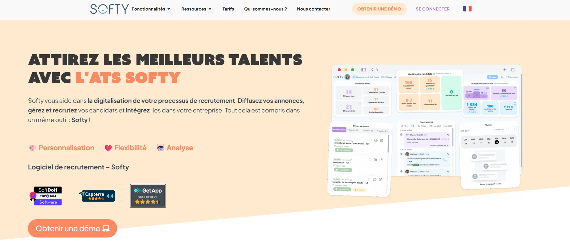 Softy est un logiciel de recrutement intuitif qui vous permet de gérer votre processus de recrutement de A à Z, de manière simple et efficace. Softy combine de nombreuses fonctionnalités et une expertise RH pour permettre à tous les recruteurs de mieux collaborer avec leurs équipes. Softy est un outil français avec des données 100 % hébergées en France.