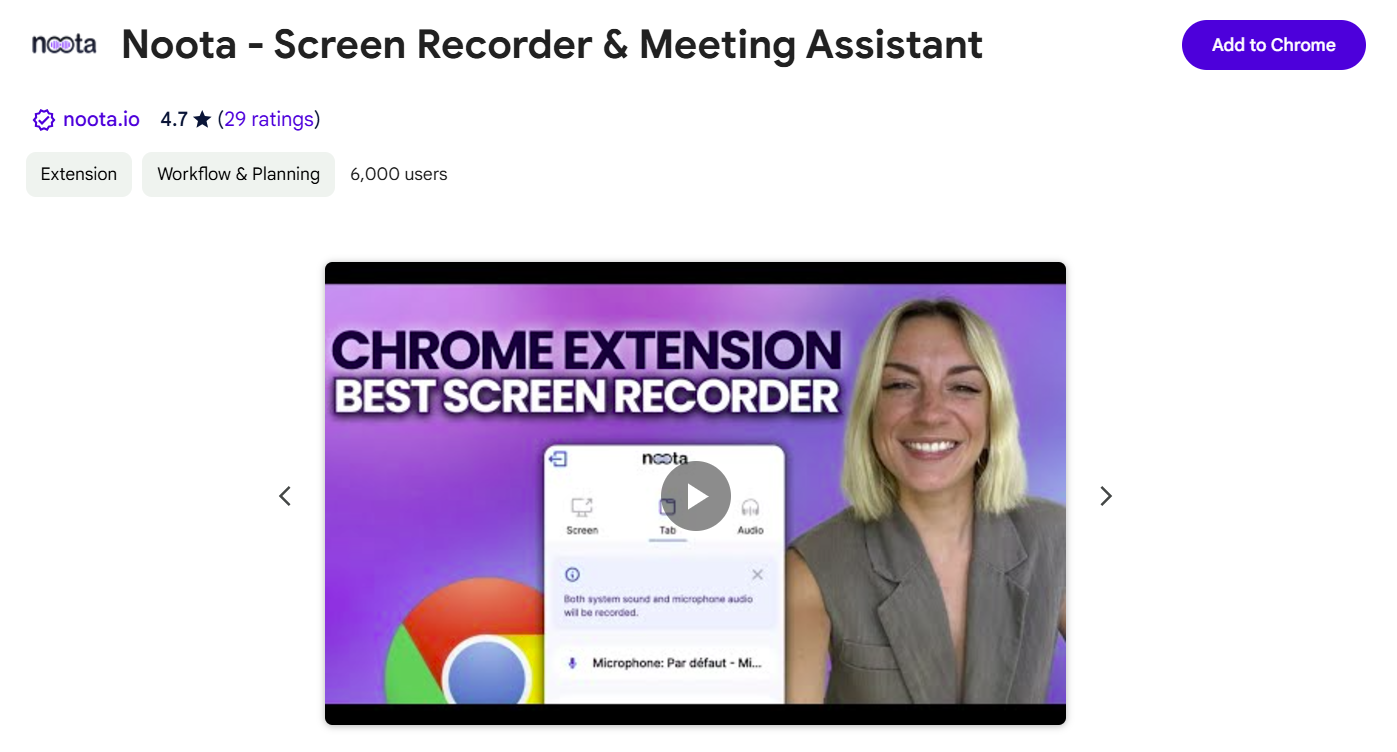 - Voeg gewoon de Noota-extensie toe aan je browser. Het werkt met populaire browsers zoals Chrome, Edge, enz.