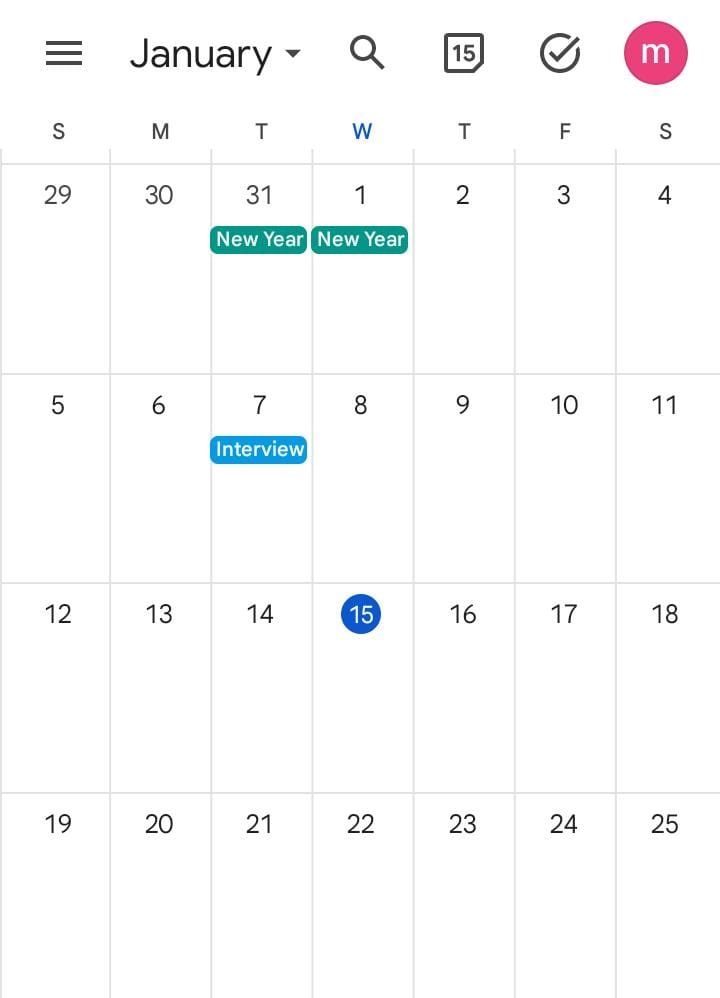 - Eerdere bijeenkomsten opzoeken: Blader door je agenda om evenementen te vinden die zijn gelabeld als”Google Meet.” Deze evenementen duiden op vergaderingen die je hebt gepland of waarvoor je bent uitgenodigd.
