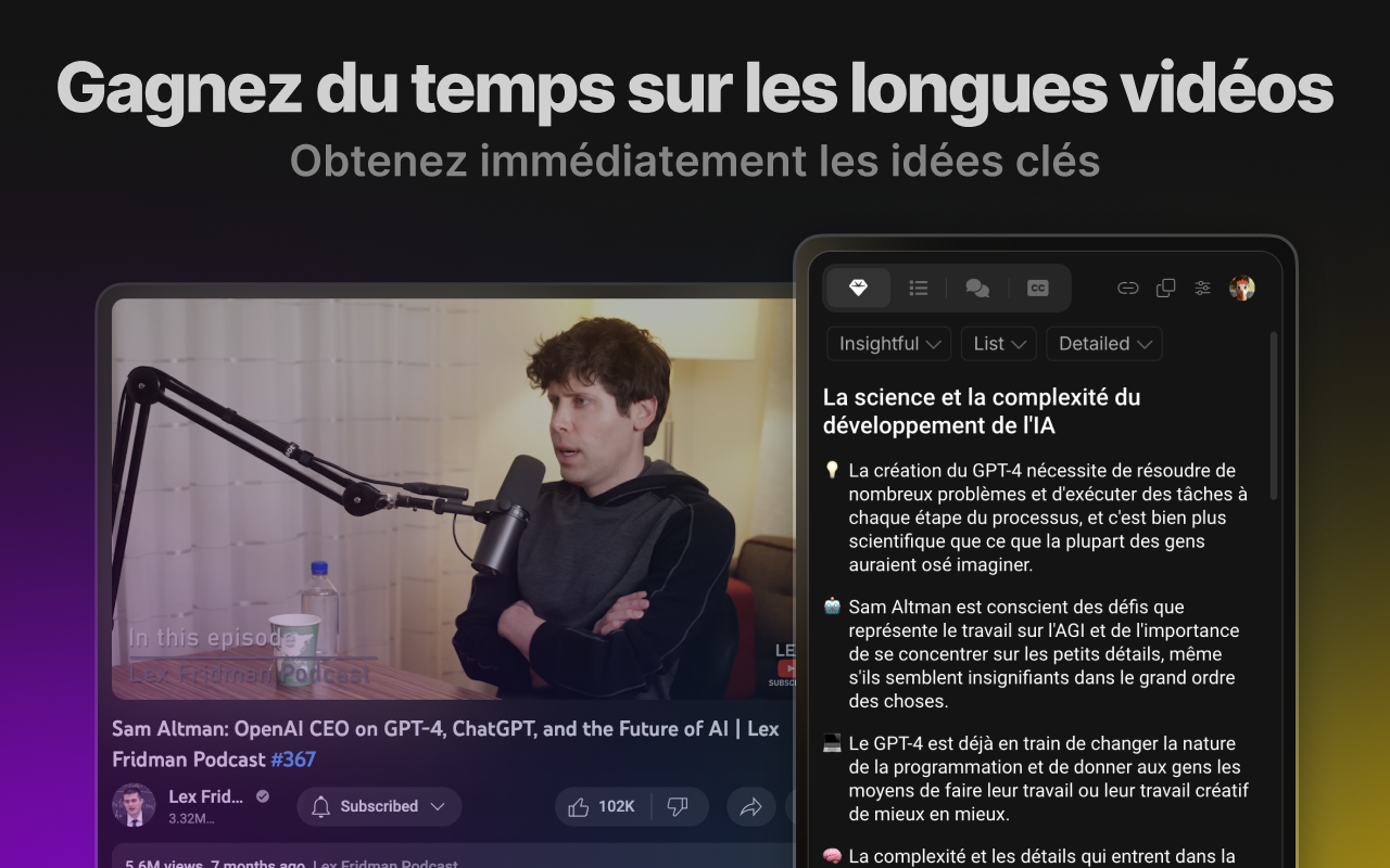 - Sofortige KI-Zusammenfassungen: Übersichten von YouTube-Videos mit einem Klick in Sekunden.