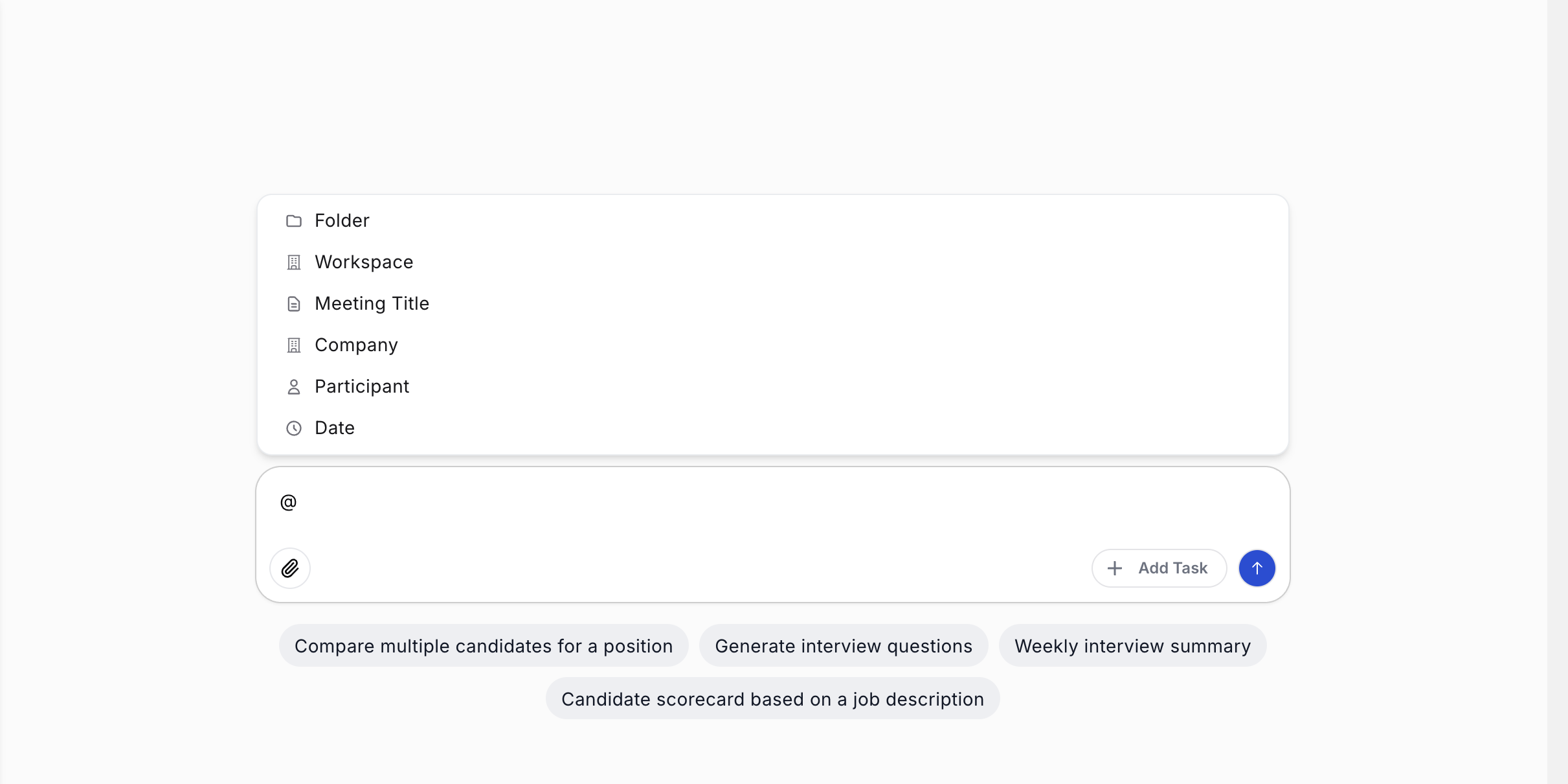 The @ mention system helps Ask Noota answer with precision by referencing your meetings and folders.