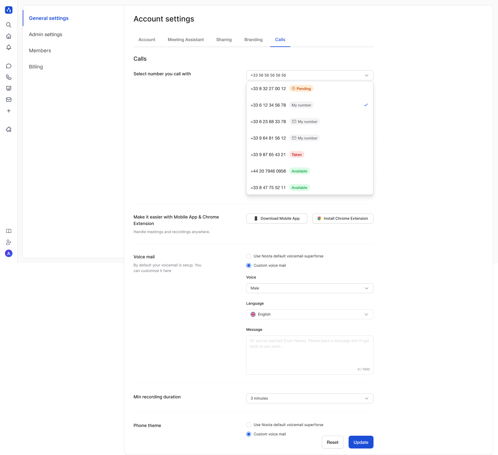 Option B - Buy a Noota number (Inbound + Outbound)