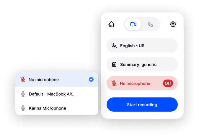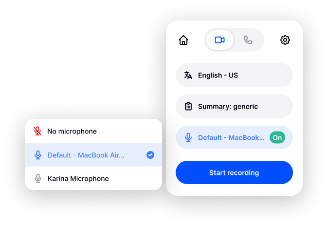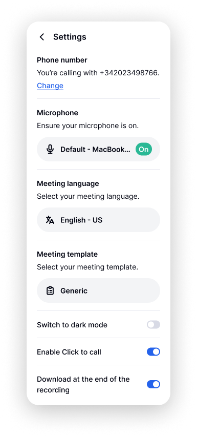 Record online meetings, make calls, and access Noota VoIP from your browser.