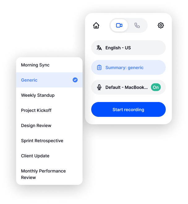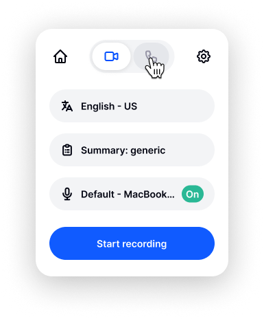 Capture any meeting happening in your browser (Zoom, Meet, Teams, Webex, etc.).