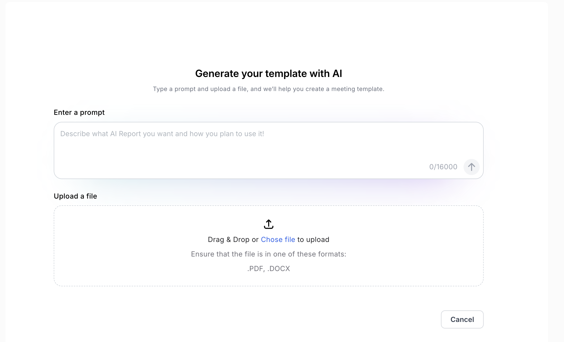 Noota’s new AI Report Generation lets you transform any file or a simple text prompt into a complete, ready-to-use meeting report in seconds.