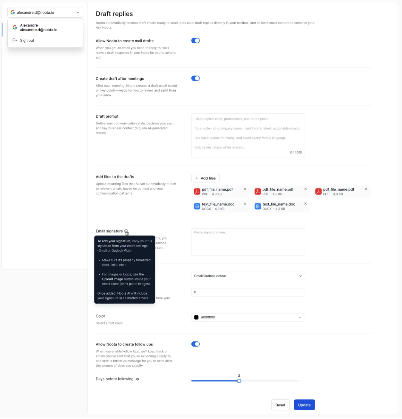 How often Noota suggests a reply draft.