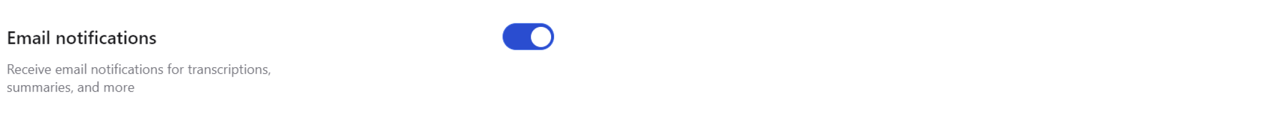 Enable or disable email notifications to receive alerts about completed transcriptions, summaries, or other platform activities.