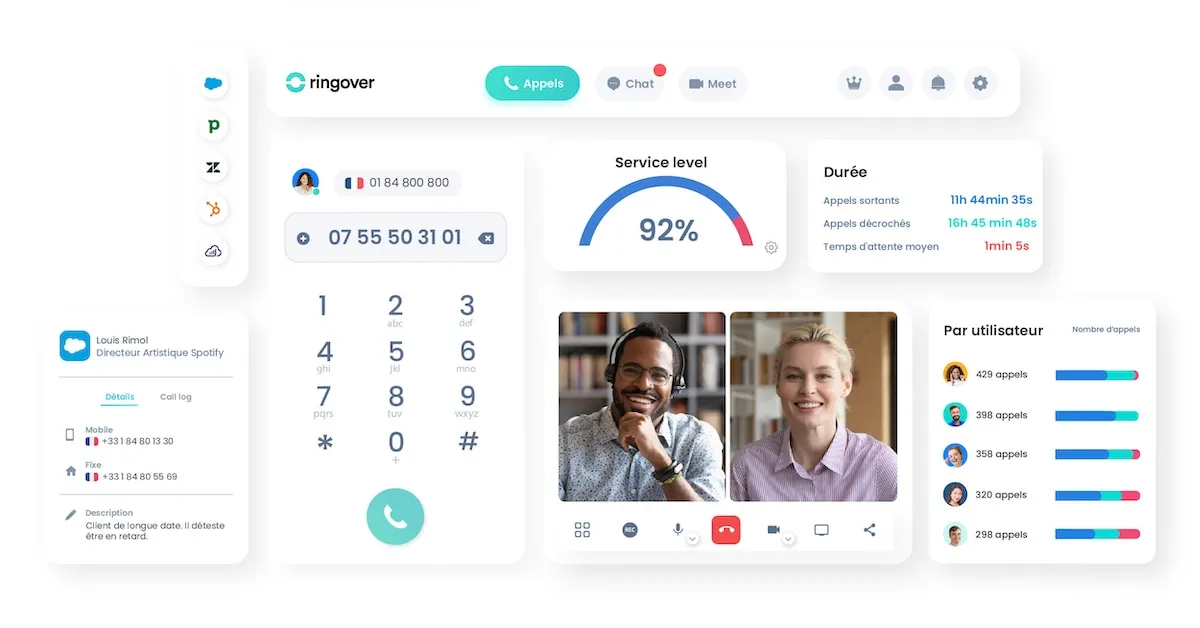Understanding the importance of streamlined workflows, Ringover integrates effortlessly with popular CRM systems like Salesforce, HubSpot, and Zoho. This means that your call transcripts are automatically linked to the relevant contact or deal, eliminating the need for manual data entry and ensuring that your records are always up-to-date.