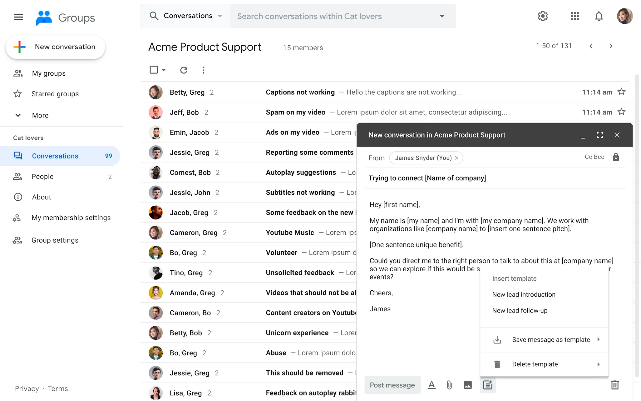 How to use an email template in Gmail
