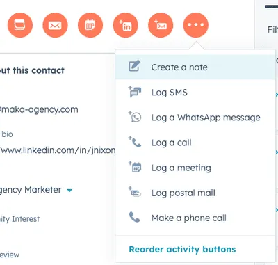 This activity becomes part of the record, so when someone else in your team opens that contact later, they quickly understand what’s gone on. It is shown as a orange notepad icon in a contact or company record.