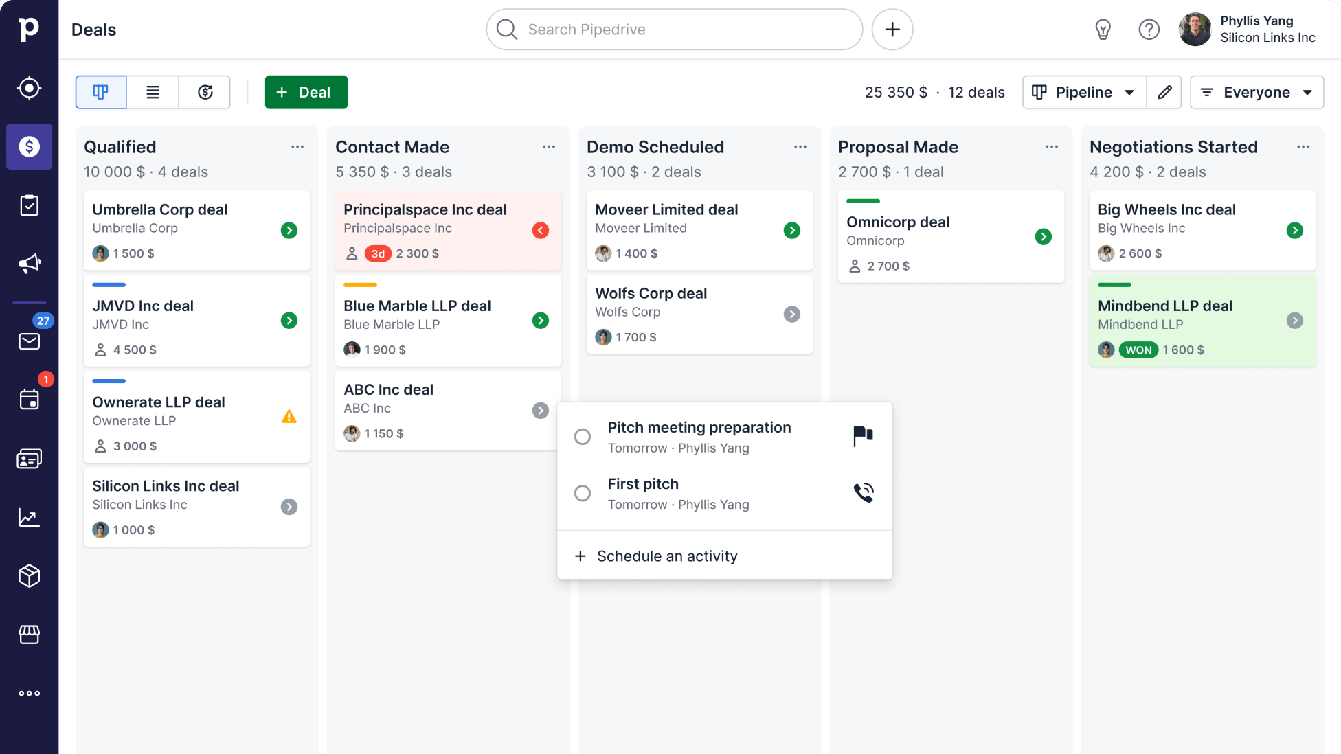 - Get an instant overview of each deal