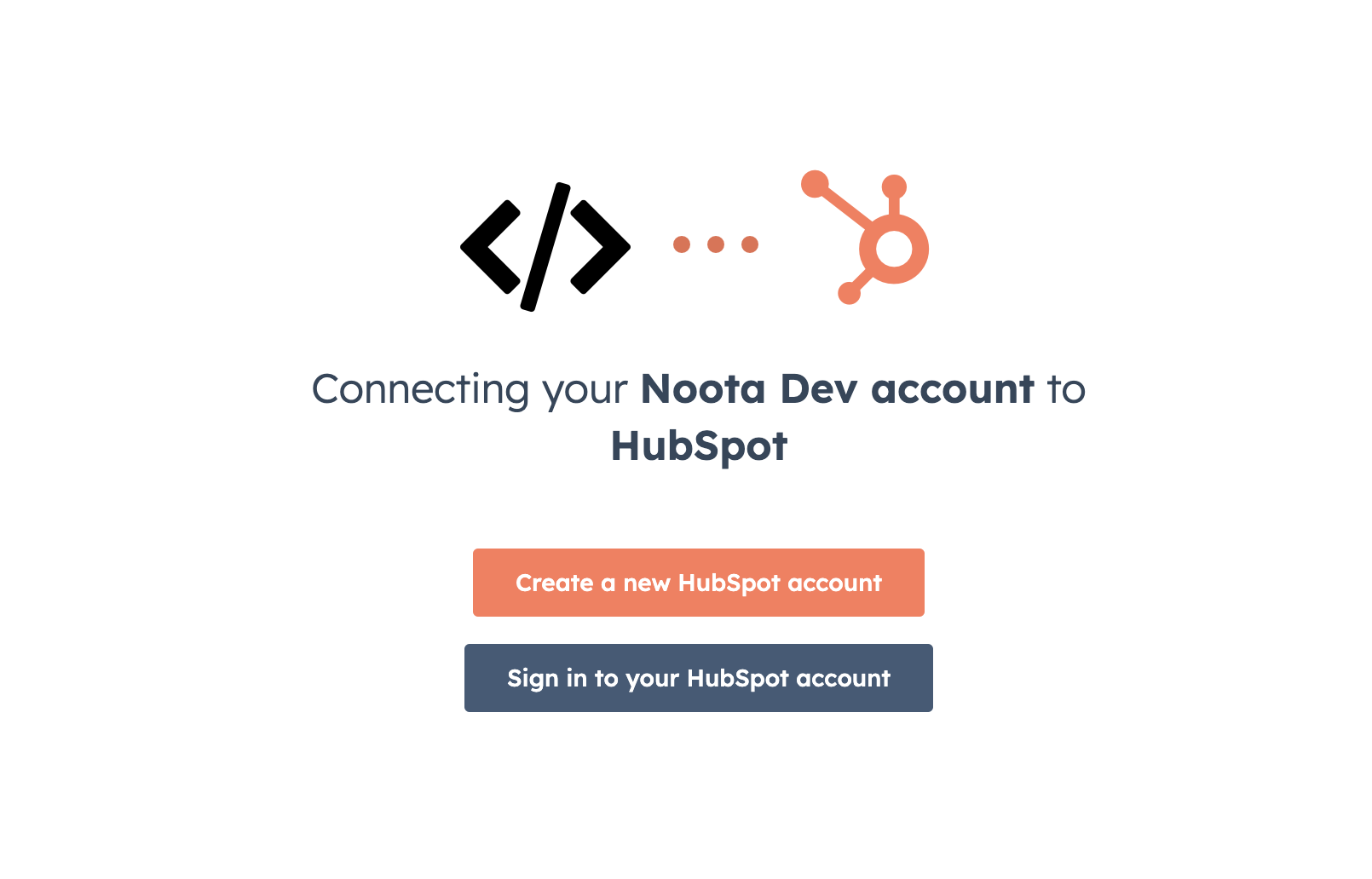 Cela ouvrira une page de configuration vous invitant à connecter votre compte Noota Dev à HubSpot.