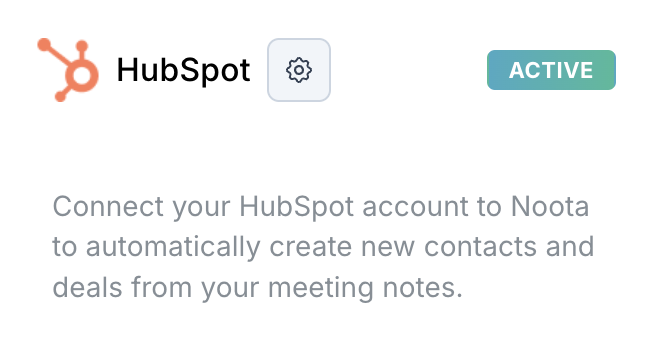 Accédez aux paramètres HubSpot de Noota et cliquez sur l'icône d'engrenage.