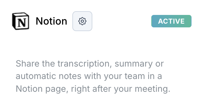 Une fois l'intégration réussie, vous verrez que Notion est désormais actif dans Noota.