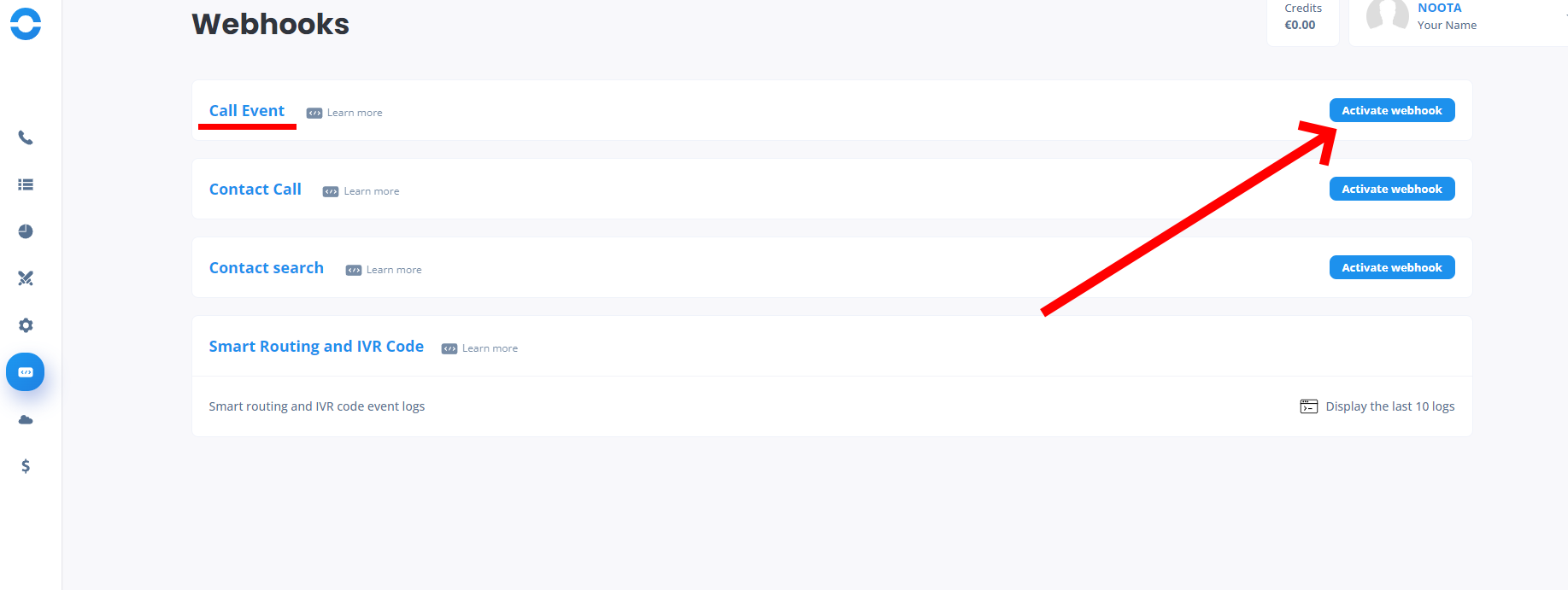 a. Dans le menu « Développeur », sélectionnez «Webhooks»: