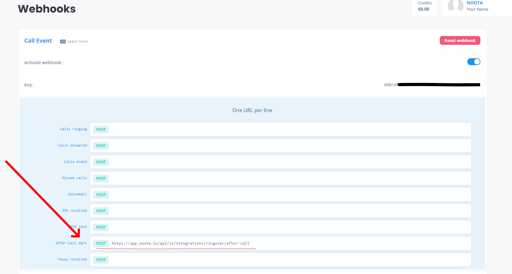 c. Ajoutez l'URL suivante pour le webhook «After-Call Work»:
